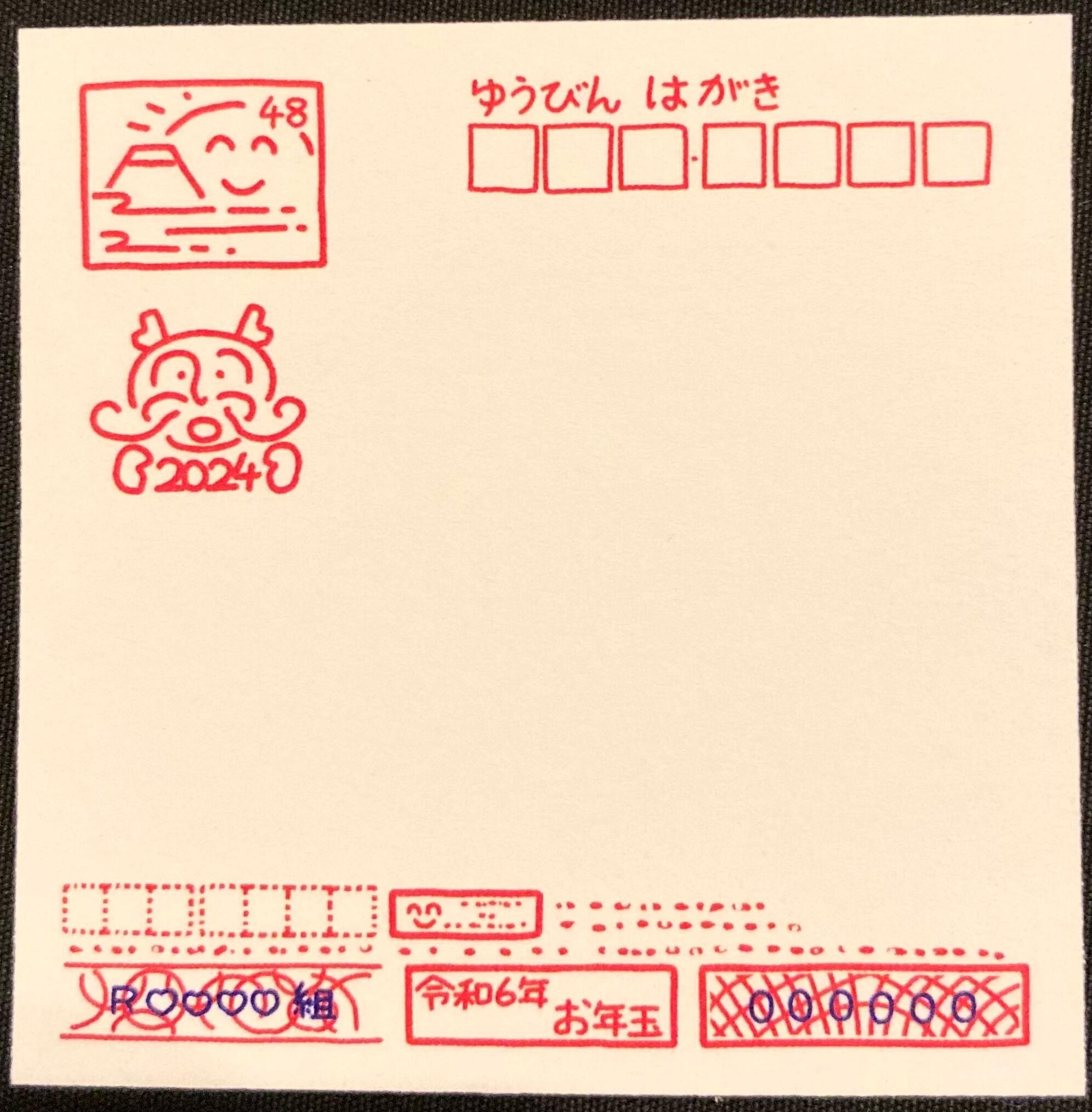 48ミリ年賀状シール 裏はハガキを模した カラー仕様 オマケ2枚付き(年賀状シールではないです) 実物は線が虹色に光ります!むちゃくちゃ良い出来です!!